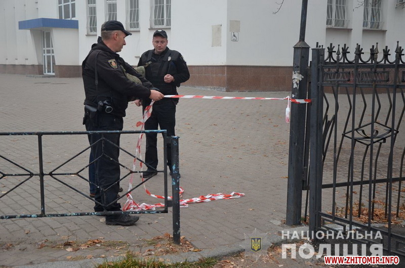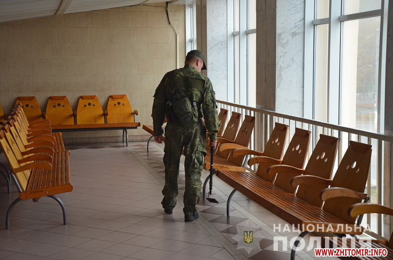 Правоохоронці, які 25 жовтня провели обстеження території біля Житомирської облдержадміністрації та у приміщенні залізничного вокзалу, жодних вибухових пристроїв не виявили.