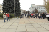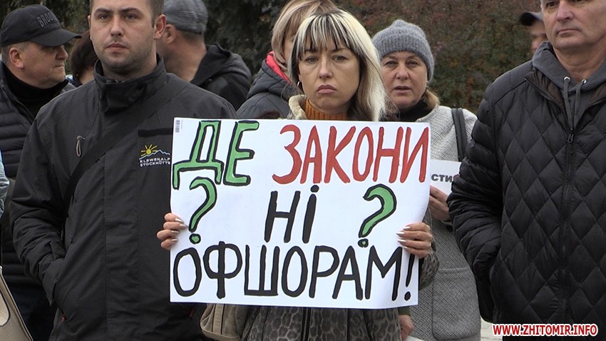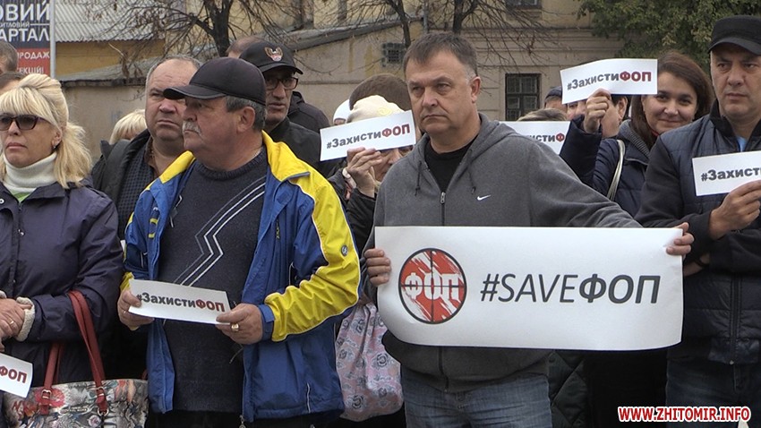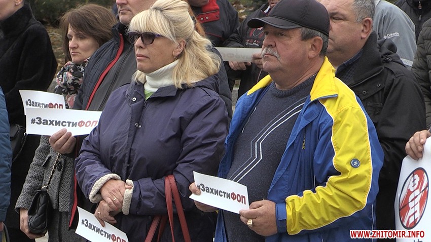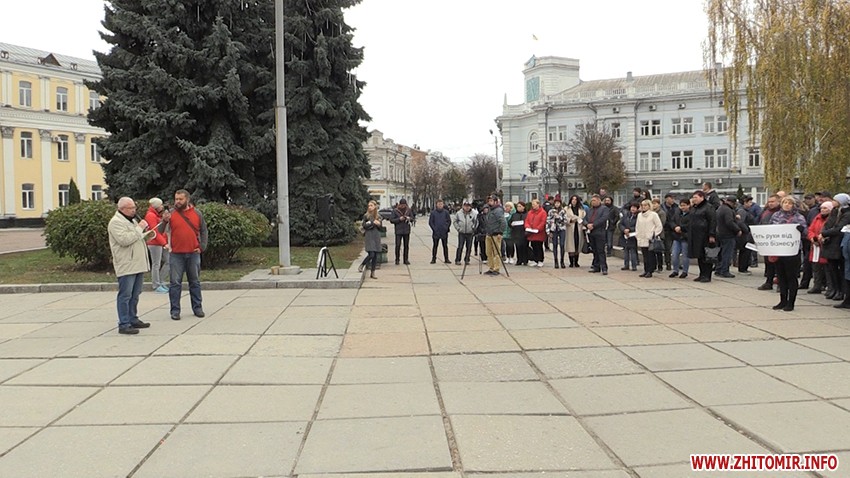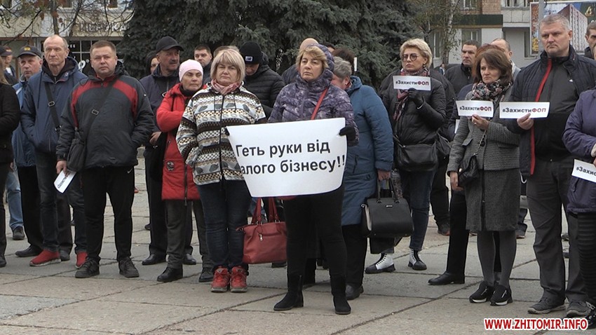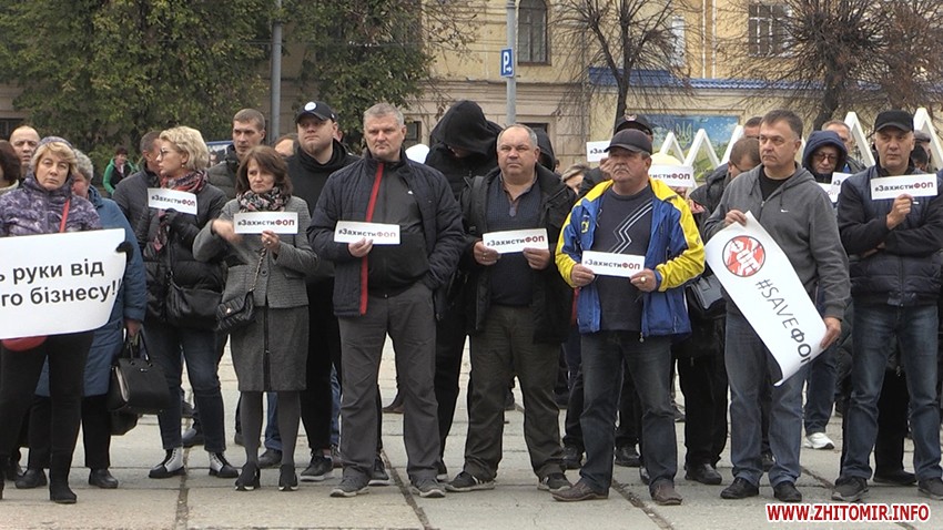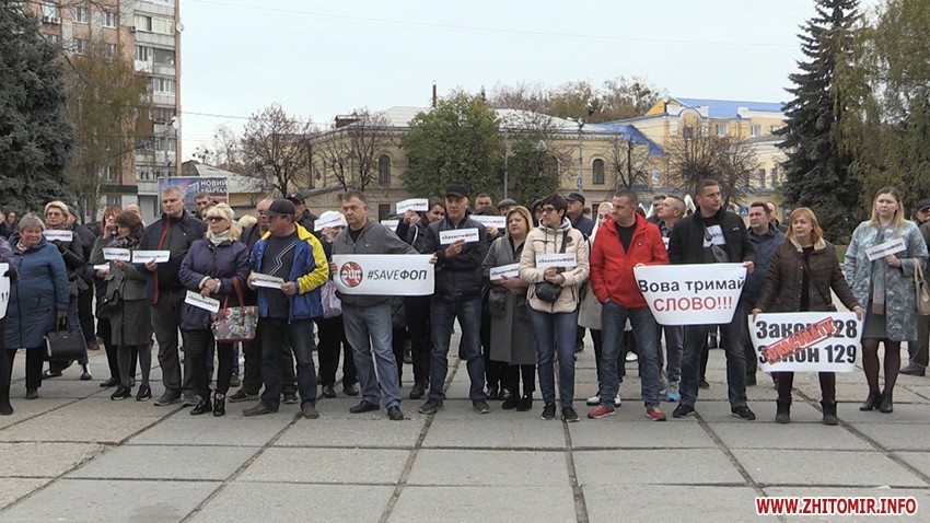 28 жовтня на майдані Корольова у Житомирі зібралась майже сотня підприємців, які долучились до всеукраїнської акції протесту проти ухвалення законів про касові апарати.