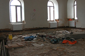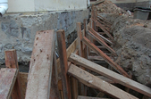 Поки немає фахівців, які проводитимуть археологічний нагляд, будівельники працюють всередині магістрату. На всіх поверхах вже зняли стару підлогу та встановлюють нову систему опалення. А навколо магістрату залишаються траншеї, які розкопали кілька тижнів тому, аби укріпити фундамент та здійснити його гідроізоляцію.