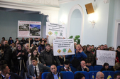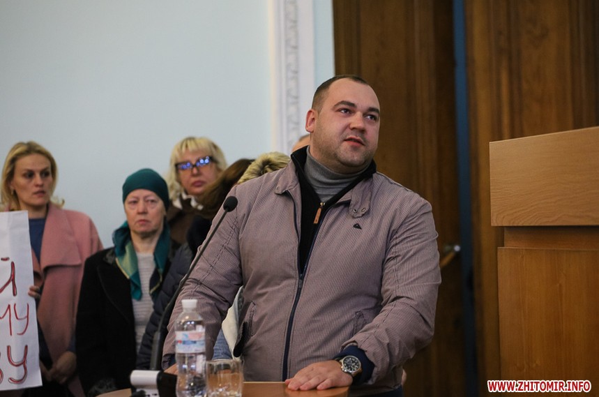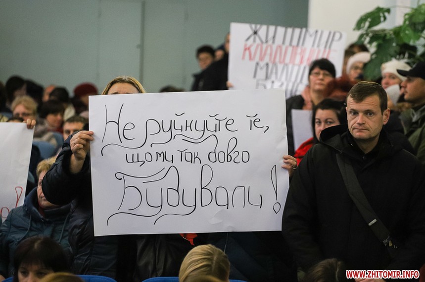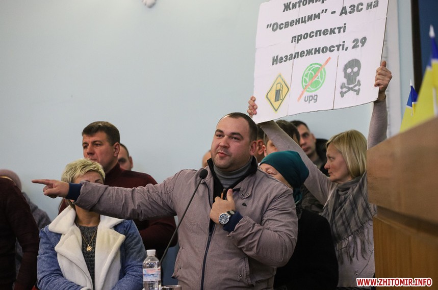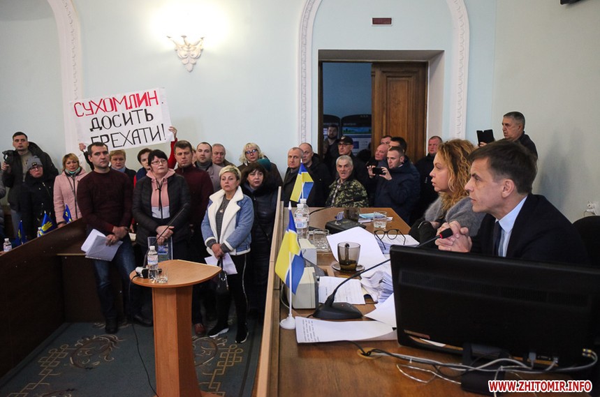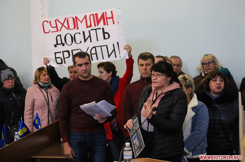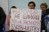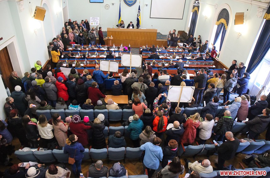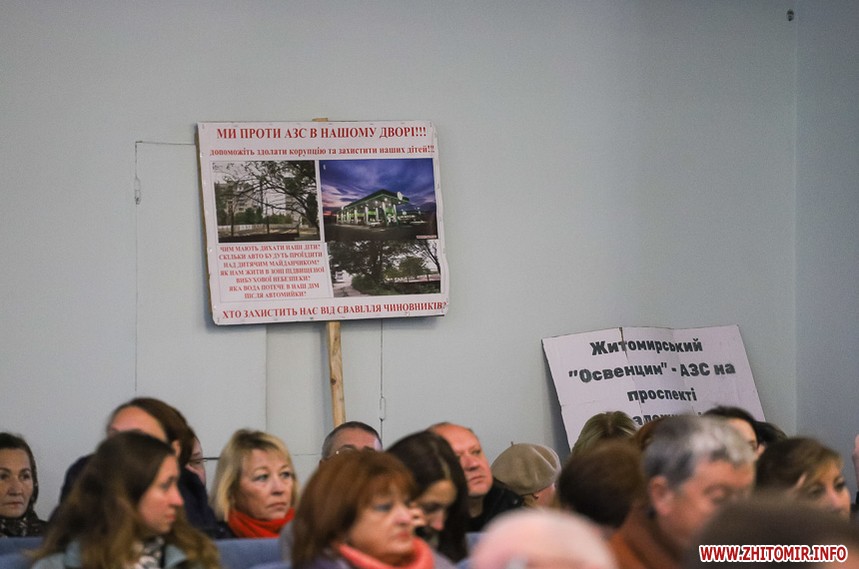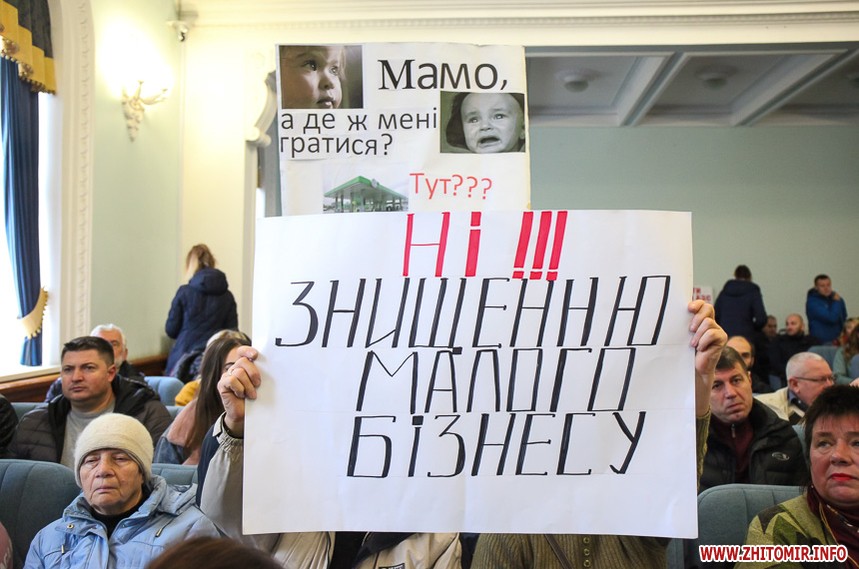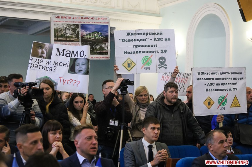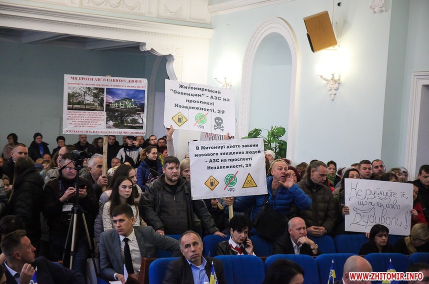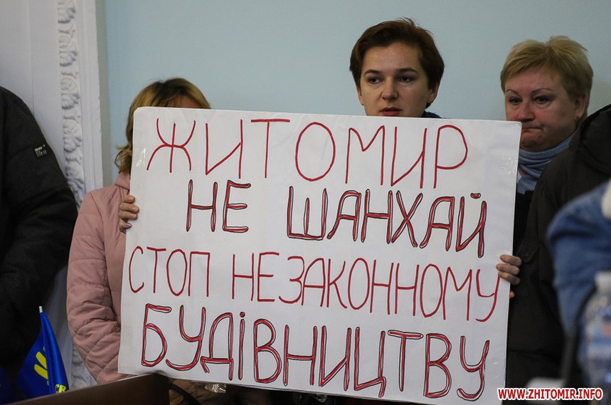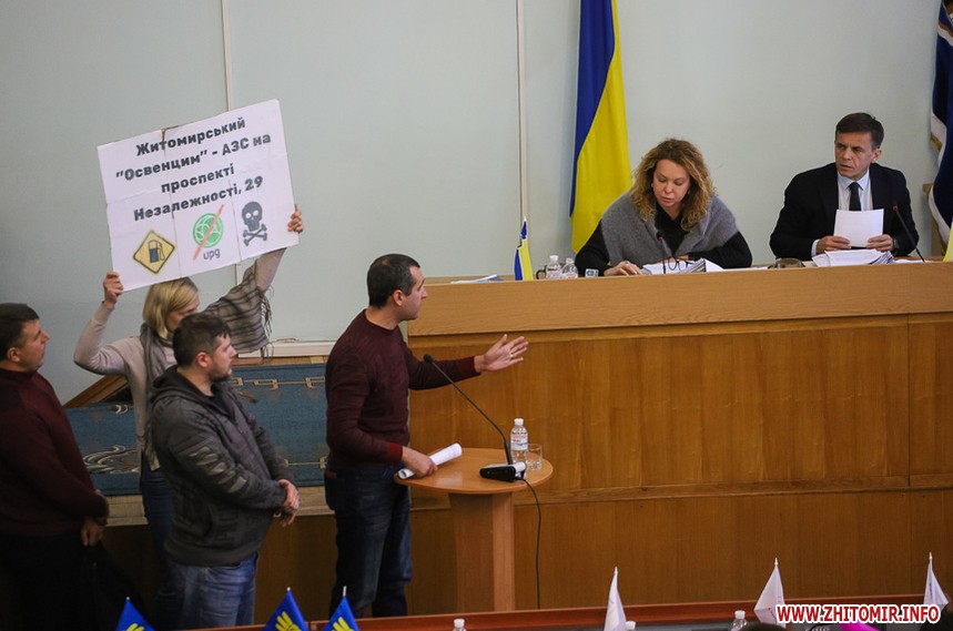 Сесія Житомирської міської ради 31 жовтня відбулася за участі численних протестувальників, які прийшли з плакатами та обурювалися будівництвом автозаправки на проспекті Незалежності, майбутньої забудови на вулиці Героїв Крут та біля Хлібного ринку, а також вимагали захисту малого бізнесу.