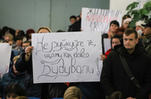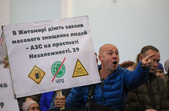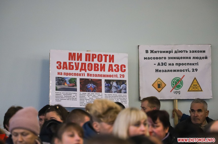 Протестувальники тримали плакати з гаслами «Ми проти АЗС в нашому дворі», «Житомирський «Освенцим» - АЗС на проспекті Незалежності», «Житомир не Шанхай, СТОП незаконному будівництву», «В Житомирі діють закони масового знищення людей…», «Не руйнуйте те, що ми так довго будували», «Ні!!! знищенню малого бізнесу» та «Сухомлин, досить брехати».