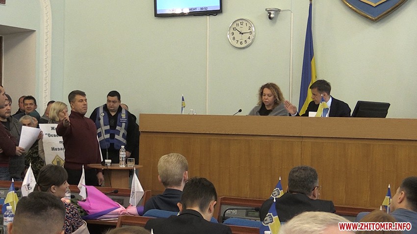 На чергову сесію Житомирської міської ради 31 жовтня прийшли кілька десятків обурених людей. Містяни виступали проти ухвалення законів про касові апарати, будівництво АЗС на проспекті Незалежності, 29, 9-поверхівки на вулиці Героїв Крут, 51 та біля Хлібного ринку.