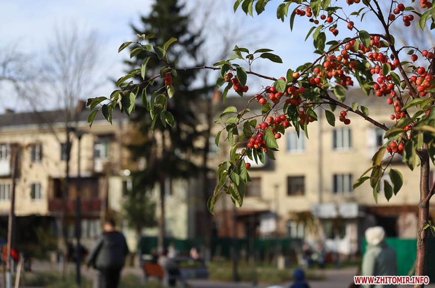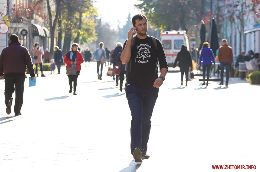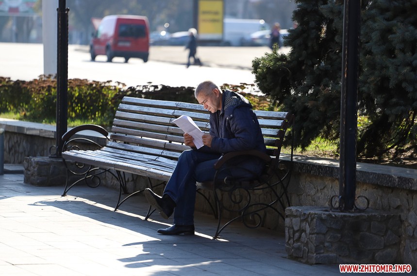 У понеділок, 4 листопада, в Житомирі та області раптово потепліло. Як і обіцяли синоптики, стовпчик термометрів стрімко поповз угору. Зокрема, по обіді годинник-термометр на майдані Перемоги в Житомирі показав +17.