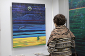 «Пишу в стилі «юризм», але коли ти розвиваєшся, то техніка змінюється. Те, що зараз бачите за моєю спиною –більш графічна робота, фарбами, але графіка. Є чисто живописні роботи, пейзажі. Наприклад, цикл навпроти нас – роботи на грані реального та абстрактного, тобто віртуальне мистецтво», – розповідає заслужений художник України Юрій Нагулко.