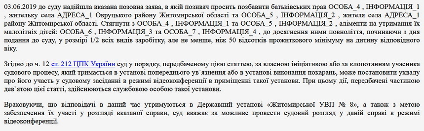Скріншот з ухвали Овруцького райсуду від 13.08.2019
