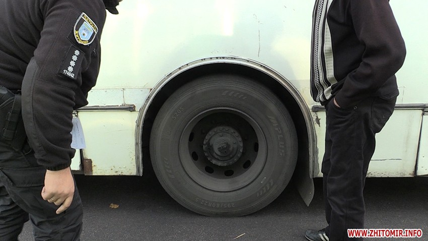 «Була винесена постанова про накладення адміністративного стягнення на водія тролейбуса КП «Житомирське ТТУ» за порушення правил дорожнього руху, а саме за технічний стан транспортного засобу. Тобто винесена постанова за те, що у нього на задній вісі різна гума, а також різні малюнки протектора, на лівому задньому колесі у нього відсутня гайка. Далі нами буде здійснено виїзд на зазначене підприємство. Також складено постанову та притягнуто до адміністративної відповідальності посадову особу, тобто механіка, який випустив на лінію технічно несправний транспортний засіб», – каже інспектор відділу безпеки дорожнього руху патрульної поліції Житомирської області Сергій Божок.