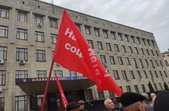 Кілька десятків людей з червоними прапорами та плакатами прийшли на майдан Корольова й проводять мітинг.