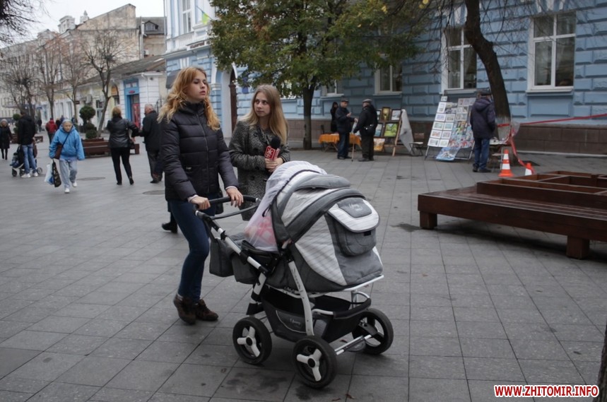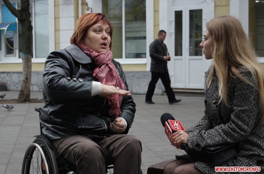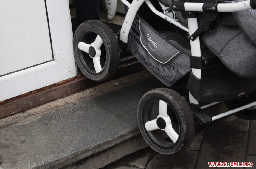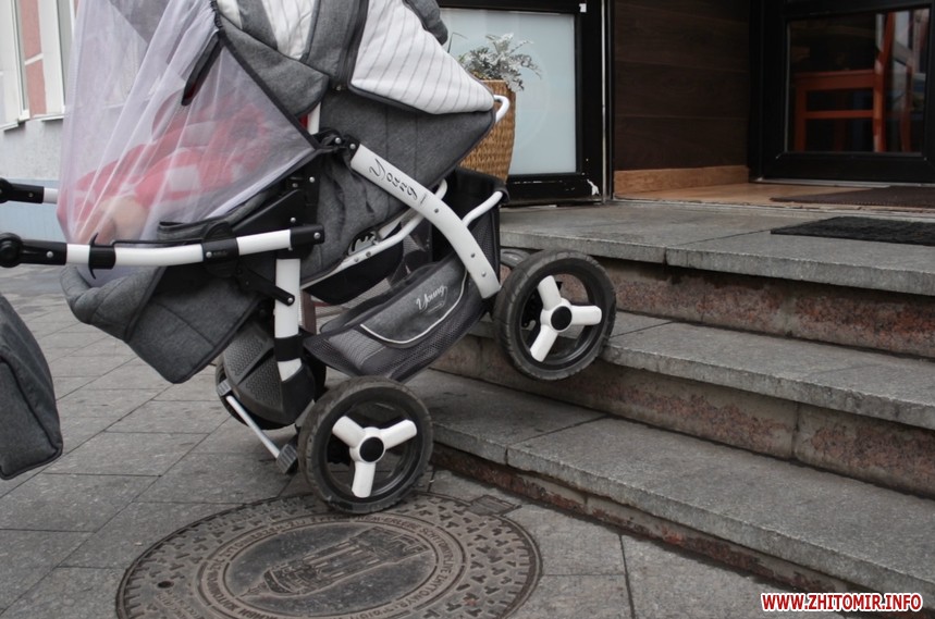 Житомирянка Марина Кузьменко має маленьку донечку. Разом з дитиною у візочку вона щодня гуляє по вулиці Михайлівській. Молода матуся говорить: заїхати на пішохідну вулицю можна без перешкод, а ось потрапити до кав'ярні або у магазин, не завжди виходить.