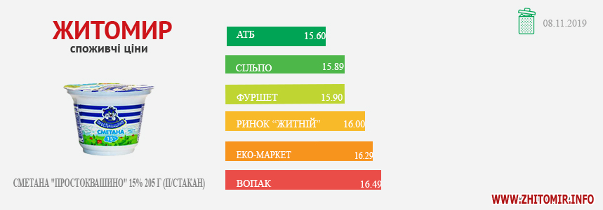 МОНІТОРИНГ ЗДІЙСНЕНО МЕТОДОМ КОНТРОЛЬНОЇ ЗАКУПІВЛІ, У МІСЦЯХ ПРОДАЖУ: AТБ, пр. Миру, 15 А, Ринок "Житній", майдан Житній ринок, Сільпо, майдан Житній ринок, 1, Вопак, вул. Київська, 87,ЕКО-маркет, вул. Мала Бердичівська, 2/7,Фуршет, вул. Вітрука, 9 а