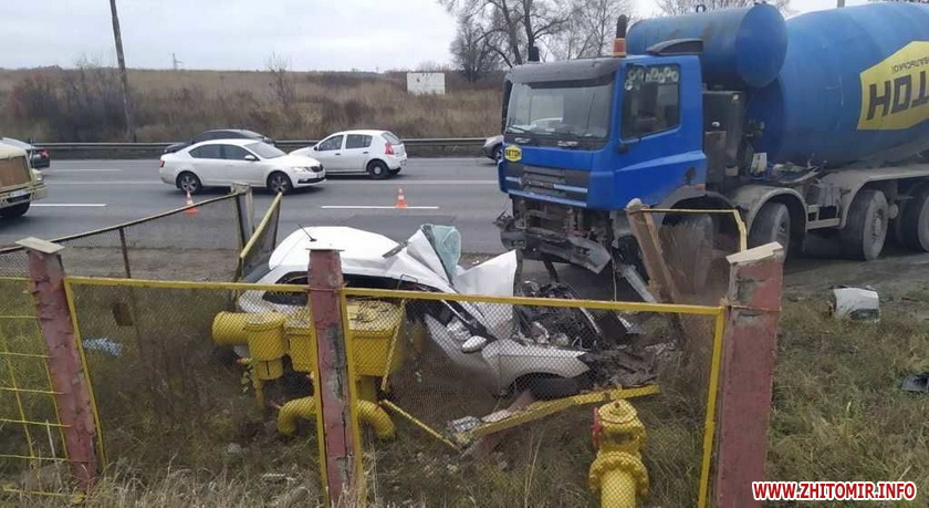 У Києві на вулиці Академіка Заболотного вантажівка-бетонозмішувач DAF розтрощила легковий автомобіль Skoda Fabia. Унаслідок ДТП загинула 21-річна водійка легковика. У соцмережі повідомляють, що загибла дівчина – житомирянка.