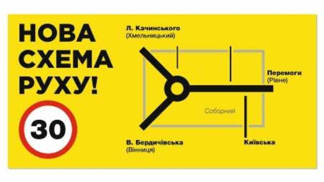 «13 листопада з 9.00буде перекрито рух транспорту на майдані Соборному для вжиття заходів щодо введення в дію тимчасової схеми організації дорожнього руху (схема додається), а саме: нанесення дорожньої розмітки, встановлення дорожніх знаків та огороджувальних бар’єрів. Просимо водіїв віднестися з розумінням за тимчасові незручності», – йдеться у повідомленні.