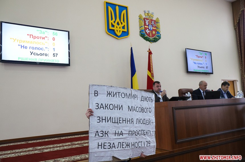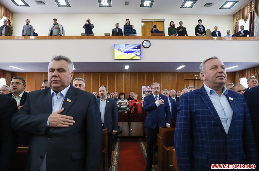 12 листопада депутати Житомирської обласної ради зібралися на чергову 28 сесію. У залі були присутні 56 депутатів з 64, у порядку денному –79 питань. Засідання розпочалося з гімну у виконанні Академічної хорової капели «Орея».