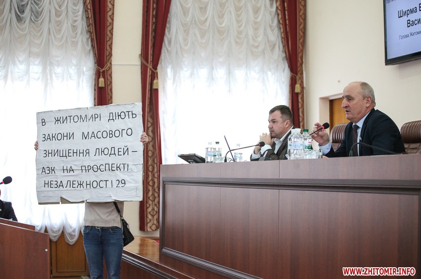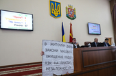 На засідання сесії прийшли протестувальники проти будівництва АЗС на проспекті Незалежності, 29. Після їх виступу голова ОДА Віталій Бунечко заявив, що хоче перевірити роботу всіх автозаправок в області.