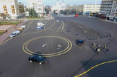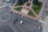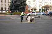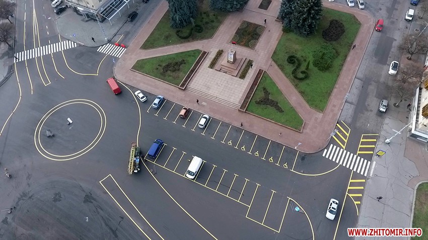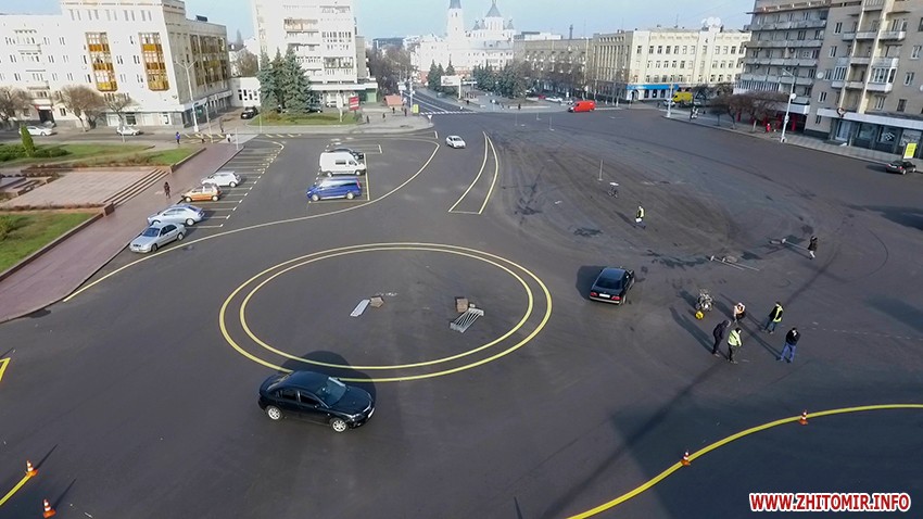 13 листопада у центрі міста почали наносити обіцяну розмітку. Як і анонсували напередодні, рух транспорту на майдані Соборному перекрили зранку після години пік. До того часу на майдані вже встигли намалювати нове коло діаметром 18 метрів.