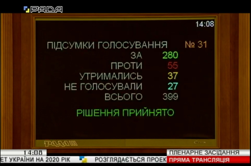 Верховна рада на ранковому пленарному засіданні 14 листопада 2019 року ухвалила закон «Про Державний бюджет України на 2020 рік».
