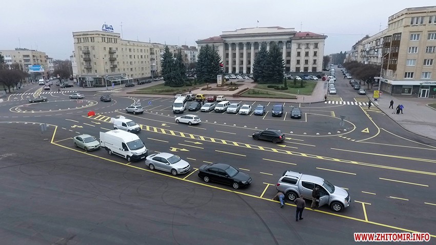 З 13 листопада у центрі міста діє нова схема руху транспорту. Змінене коло, додаткові паркомісця, вільний простір – такий вигляд сьогодні має житомирський майдан Соборний.