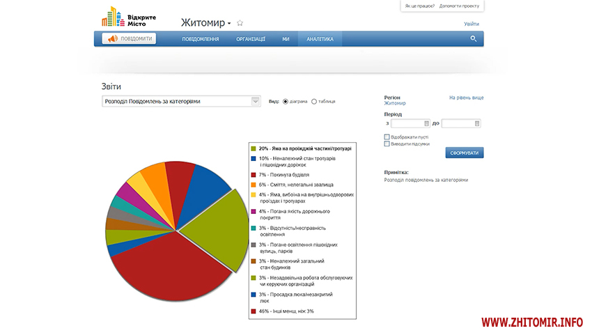 За рік платформою скористалися більше сотні житомирян. Найчастіше вони повідомляли про поганий стан проїжджих частинах та тротуарів.