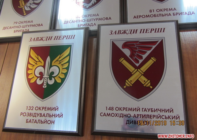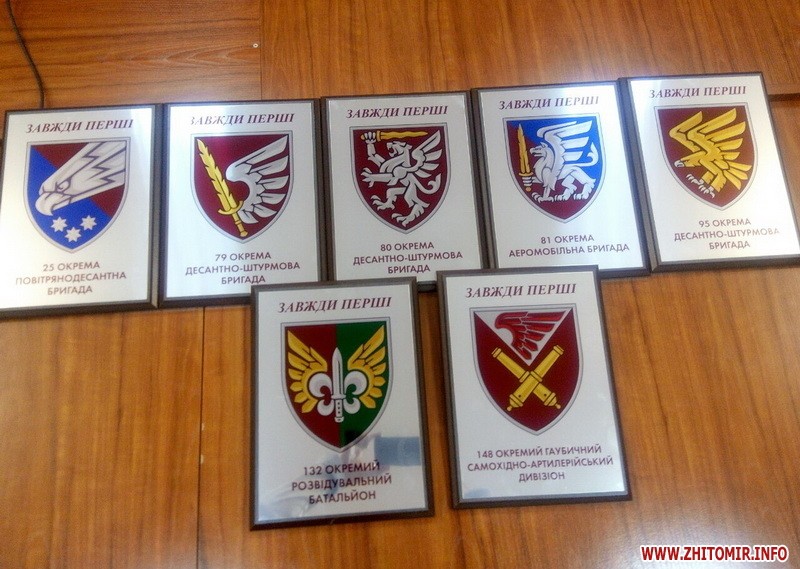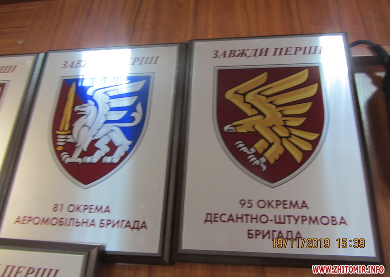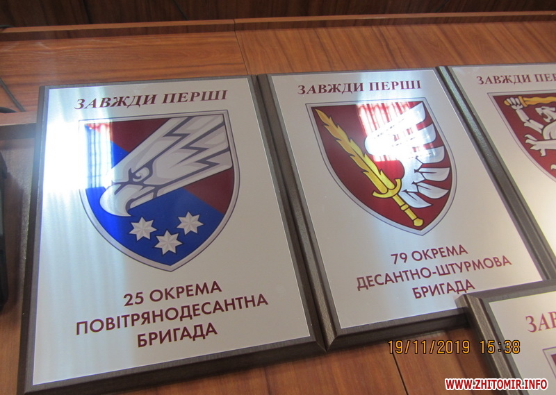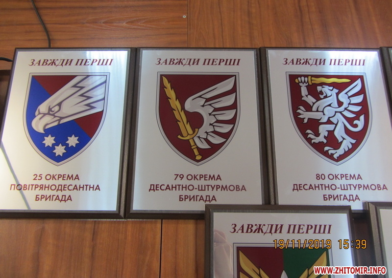Символічні зображення, що нанесені на нові шеврони, 19 листопада журналістам показали в Житомирській ОДА під час пресконференції, на якій окреслили досягнення та здобутки Десантно-штурмових військ Збройних Сил України за 2019 рік.