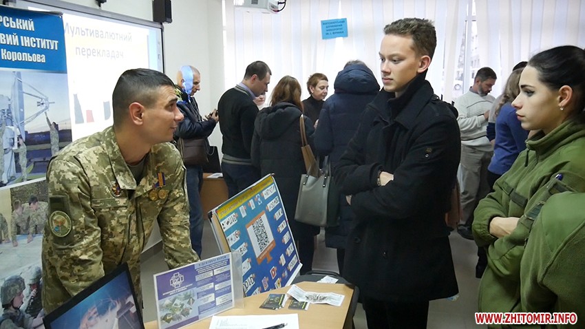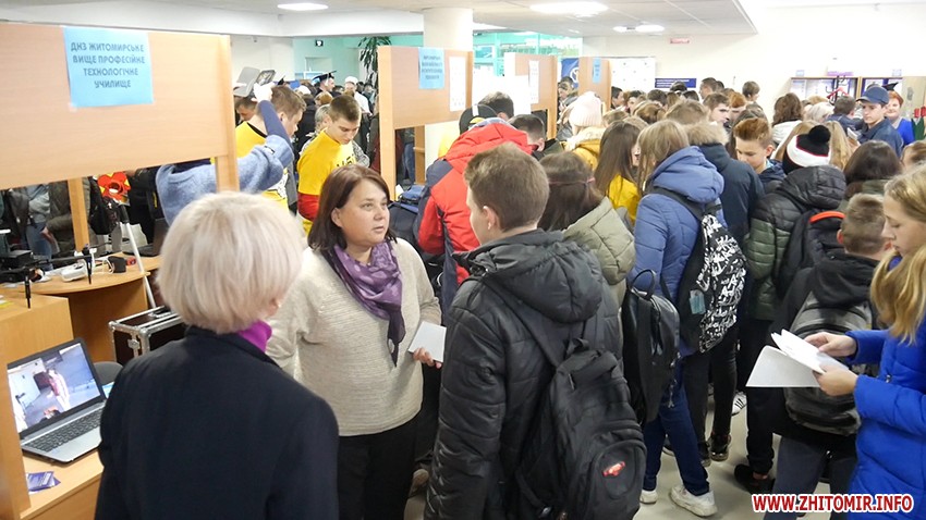 «Ми запросили випускників 9-11 класів міста Житомира й Житомирського району та 22 навчальних заклади різного рівня акредитації: університети, коледжі, центри професійно-технічної освіти й інші професійно-технічні навчальні заклади. Ідея сьогодні така, щоб у такий незначний проміжок часу максимально можна було поспілкуватися з приймальними комісіями навчальних закладів, отримати всю інформацію», – розповіла заступниця директора Житомирського міського центру зайнятості Жанна Титаренко.