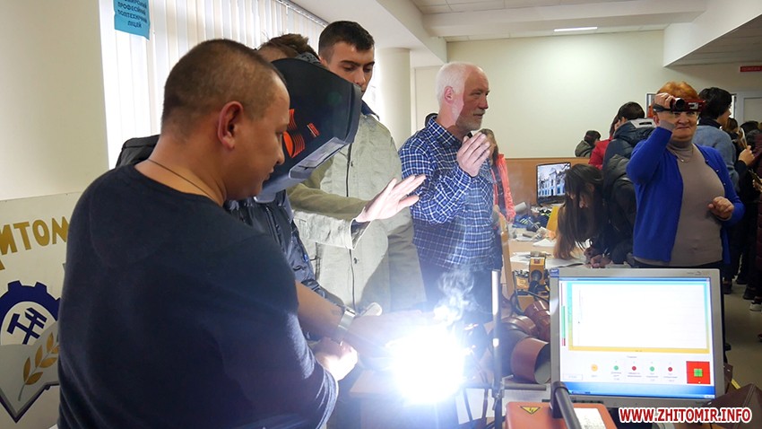 «Ми презентуємо сварочний апарат, це тренажер для того, щоб навчати студентів-першокурсників запалювати дугу. Такий тренажер потрібен, щоб вони не боялися це робити на справжній зварці», – говорить студент Житомирського професійного політехнічного ліцею Сергій Машкара.
