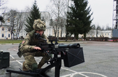 «Перед вам зараз стоїть зразок українського виробництва VАХ-40, автоматичний гранатомет, перший гранатомет, розроблений в України за стандартами НАТО», — зауважує молодший сержант 95-ї ОДШБр Іван Микитюк.