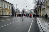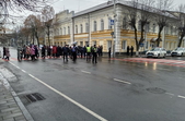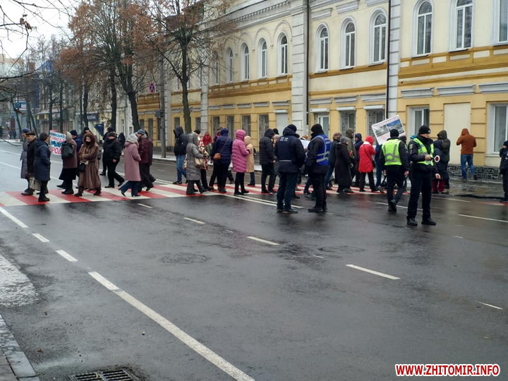 Близько 10.00 25 листопада кілька десятків протестувальників перекрили рух по вулиці Великій Бердичівській.