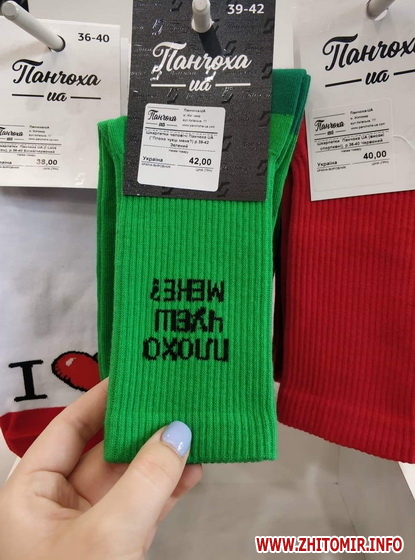 У магазині «Панчоха UA» на вулиці Київській у Житомирі продаються шкарпетки з фразами президента Володимира Зеленського, що вже стали «крилатими».