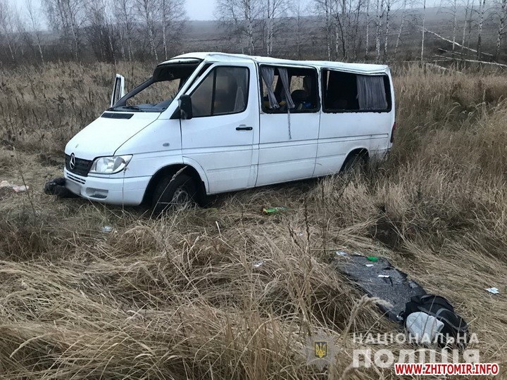 У результаті вказаної дорожньої пригоди водій та 7 його пасажирів, жінки і чоловіки віком від 19 до 46 років, отримали тілесні ушкодження різного ступеню тяжкості. Нині вони госпіталізовані до Коростенської та Лугинської районних лікарень.
