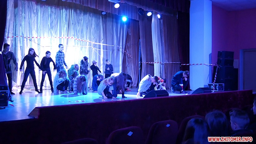 29 листопада в рамках всеукраїнської акції «16 днів без насилля» у житомирському Палаці культури показали виставу про булінг «Дивний час 12-21». Про цькування, залякування та приниження школярам зі сцени розповідали їх однолітки.