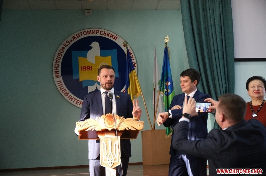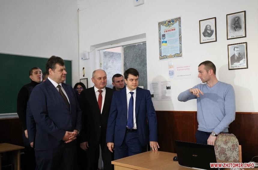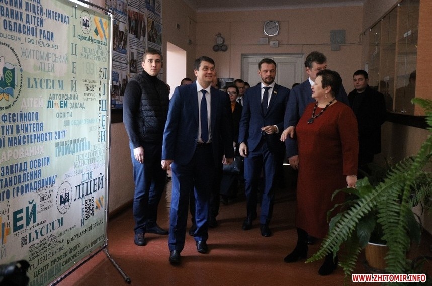 Зранку він відвідав «Житомирський обласний ліцей-інтернат для обдарованих дітей», що на Коростишівській, 15. Тут очільнику Парламенту провели екскурсію навчальним закладом, під час якої він мав нагоду поспілкуватися з педагогічним колективом та ліцеїстами.