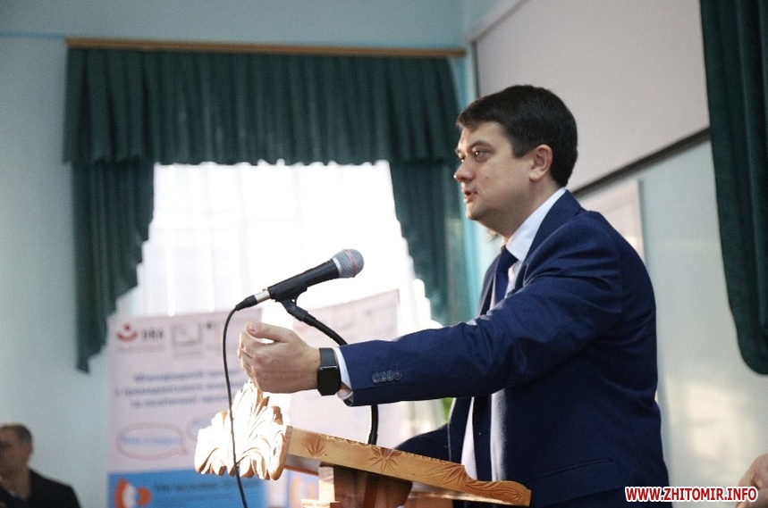 Як повідомляв Житомир.info, Дмитро Разумков як голова партії «Слуга народу» був у Житомирі 24 червня 2019 року: відвідав АТ Житомирський маслозавод «Рудь» та поспілкувався зі студентами і викладачами Державного університету «Житомирська політехніка».