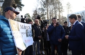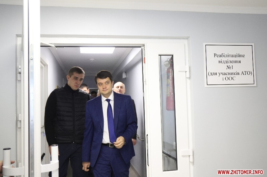 Далі Дмитро Разумков відвідав «Обласний медичний центр вертебрології і реабілітації» на Чуднівському шосе, 1, де його зустріли противники будівництва АЗС на проспекті Незалежності у Житомирі. Після спілкування з протестувальниками голова Верховної ради оглянув центр реабілітації та поспілкувався з медпрацівниками.