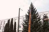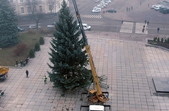 Близько 14:00 головну ялинку міста встановили на майдані Корольова.
