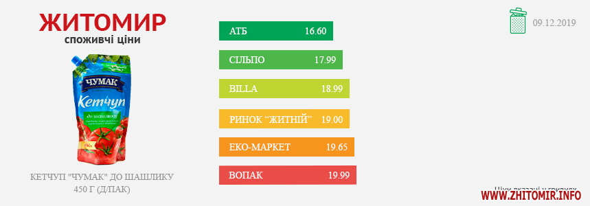 МОНІТОРИНГ ЗДІЙСНЕНО МЕТОДОМ КОНТРОЛЬНОЇ ЗАКУПІВЛІ, У МІСЦЯХ ПРОДАЖУ: AТБ, пр. Миру, 15 А, Ринок "Житній", майдан Житній ринок, Billa, пр. Миру, 15 1, Вопак, вул. Київська, 87, ЕКО-маркет, вул. Мала Бердичівська, 2/7, Сільпо, майдан Житній ринок, 1