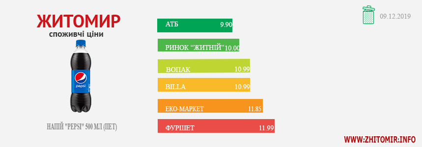 МОНІТОРИНГ ЗДІЙСНЕНО МЕТОДОМ КОНТРОЛЬНОЇ ЗАКУПІВЛІ, У МІСЦЯХ ПРОДАЖУ: AТБ, пр. Миру, 15 А, Ринок "Житній", майдан Житній ринок, Billa, пр. Миру, 15 1, Вопак, вул. Київська, 87, ЕКО-маркет, вул. Мала Бердичівська, 2/7, Фуршет, вул. Вітрука, 9 а