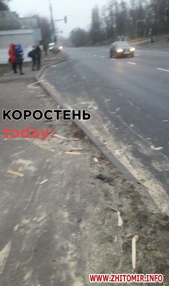 «З сильно перегруженої вантажівки Iveco, за кермом якої був п’яний водій, при повороті на зупинку в районі «Пашини» порвавши тент, прямо на дорогу висипалися 4-метрові дошки, які пошкодили дві машини, зруйнували електроопору та виламали двері його ж машини. Керманич вантажівки не зупинився та попутно біля заправки UPG зачепив іншу фуру. Зупинили горе-водія аж перед мостом, за заправкою ОККО. Водій був дуже п'яний. На щастя, ніхто не постраждав, хоча біля зупинки на «Пашинах» завжди людно. Дошки збирали до самого ранку», – розповів чоловік коростенському виданню.