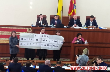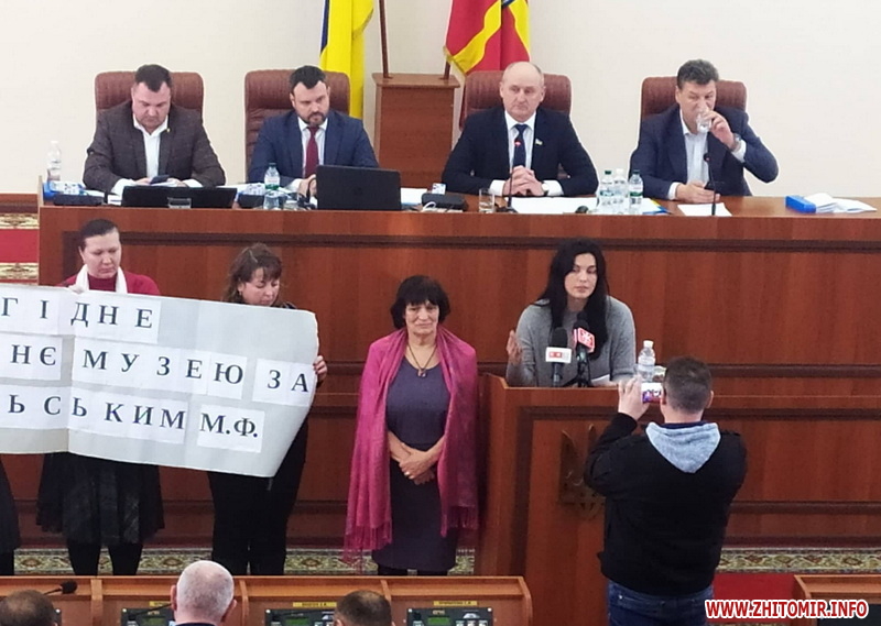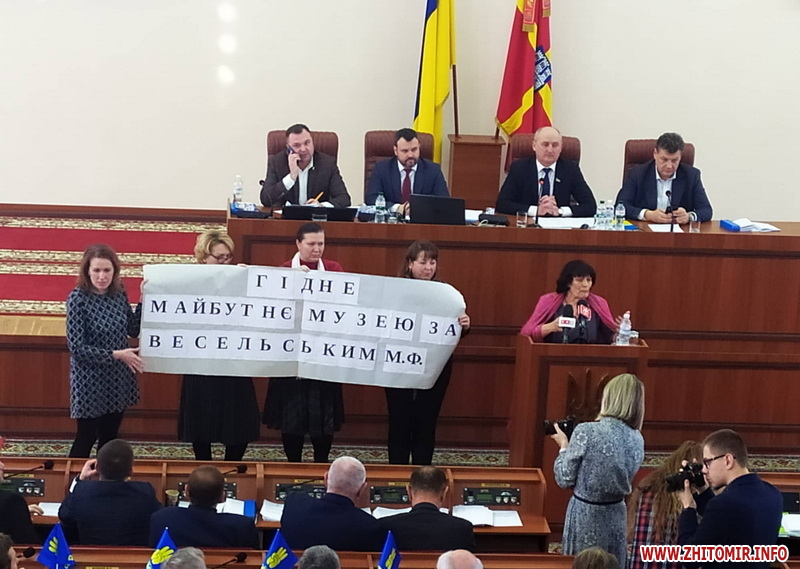 Представники колективу краєзнавчого музею прийшли на сесію облради і висловили підтримку Миколі Весельському, який виконував обов’язки директора КЗ «Житомирський обласний краєзнавчий музей», проте програв конкурс колишньому керівнику Роману Насонову.