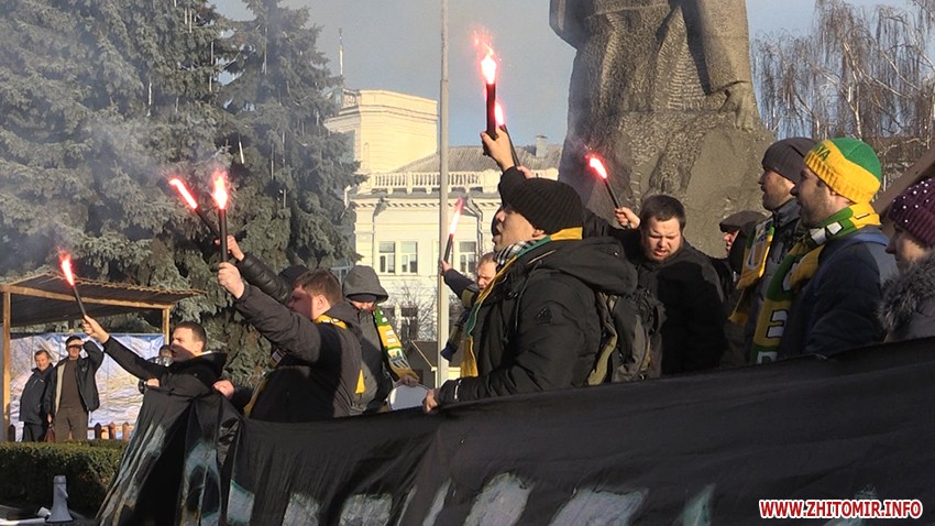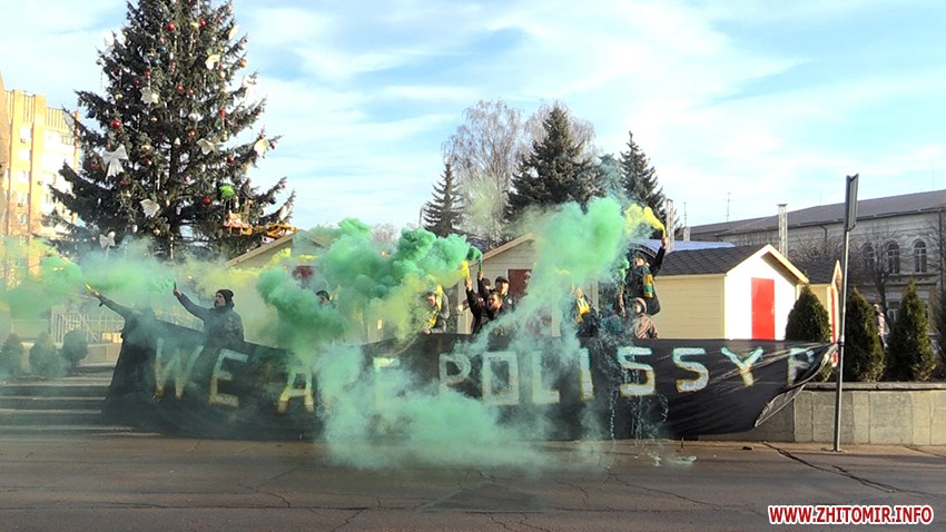 Вранці 18 грудня кілька десятків вболівальників житомирського футбольного клубу «Полісся» зібрались на майдані Корольова в центрі Житомира.