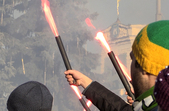 «Справа в тому, що тут багато людей, які пройшли АТО. Я сам був в АТО 5 разів. Так само багато вболівальників у 95-й бригаді. І коли ми йшли захищати Батьківщину, у багатьох були ось такі шарфики житомирського «Полісся». І нашим гаслом тоді було: ми зробимо все, для того, щоб вони грали на українських стадіонах під українським прапором. Сьогодні депутати роблять все для того, щоб футболу під українським прапором не було», – сказав голові Житомирської ОДА вболівальник «Полісся», учасник АТО Олексій.