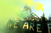 Вони прийшли, щоб висловити своє ставлення до вчорашньої новини про можливе припинення існування професійної футбольної команди міста.