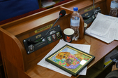 Під час сесії у коридорі, перед входом до сесійної зали, діяла виставка робіт народної творчості.