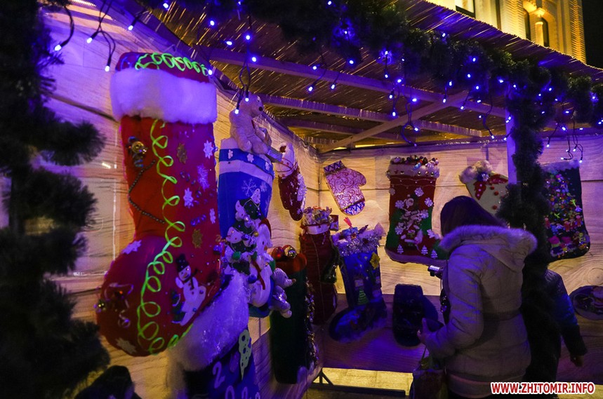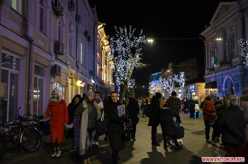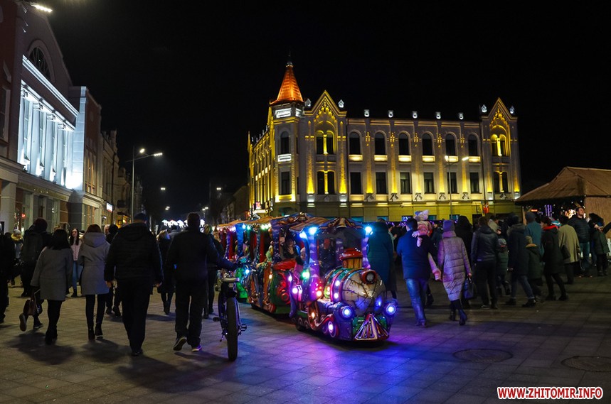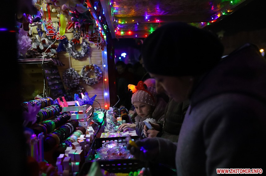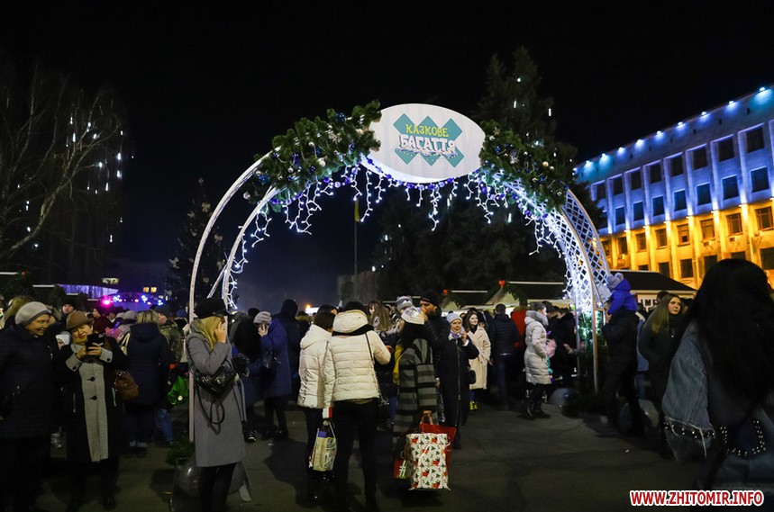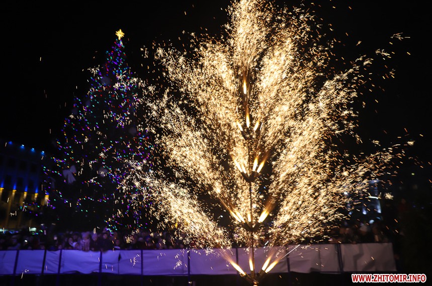 «Головну новорічну ялинку Житомира в цьому році прикрашають 824 новорічні іграшки, 30 декоративних прикрас, близько 1 кілометра гірлянд різних кольорів, а навколо красуні – різдвяний ярмарок, головна сцена святкувань та казкові фотозони, ігрові та розважальні локації», – йдеться у повідомленні.