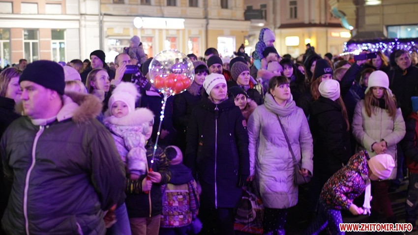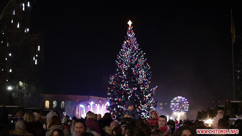 Після цього святий Миколай зі сцени запросив присутніх на майдан Корольова, аби разом запалили вогники на головній ялинці міста. Подивитися на зелену красуню прийшли кілька тисяч житомирян. О 19:05 святкове дерево засяяло вогнями.