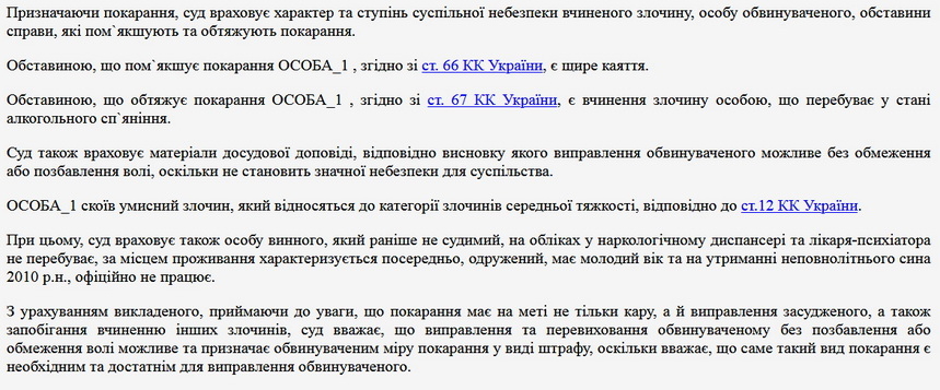 Суд врахував щире каяття та неповнолітнього сина й призначив чоловіку найменше з можливих покарань – 8,5 тис. грн штрафу та постановив повернути йому арештовані кошти – 200 гривень.