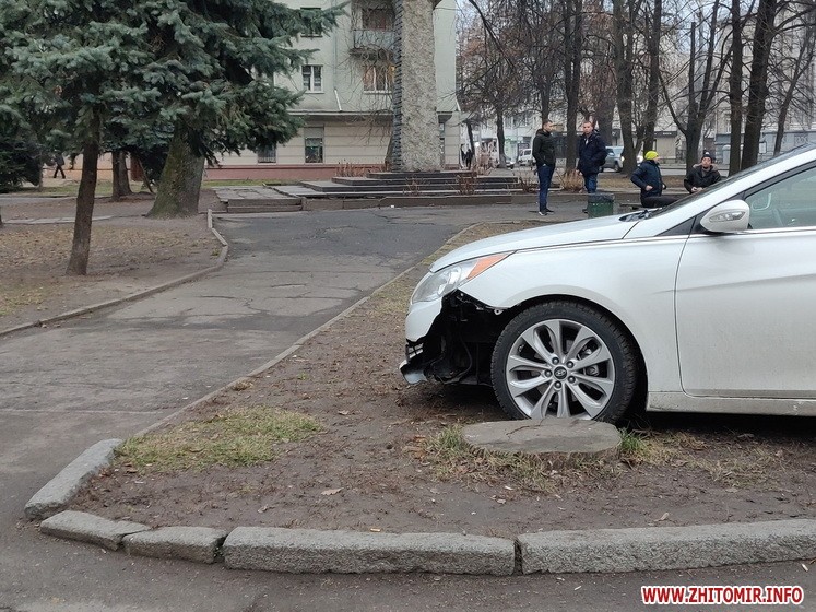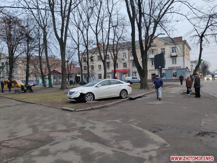 У Житомирі 21 грудня біля перехрестя вулиць Київська-Князів Острозьких сталася аварія, внаслідок якої автомобіль виїхав на тротуар, у сквер.