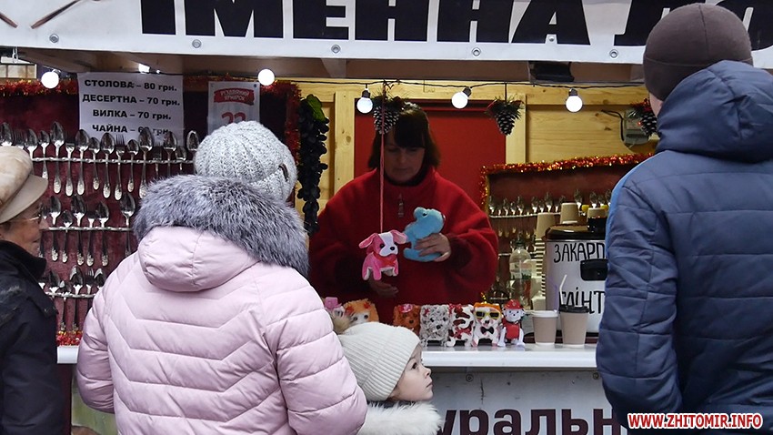 Новорічні прикраси, іграшки, сувеніри та солодощі – усе це житомиряни можуть побачити у будиночках на цьогорічному Різдвяному ярмарку. Ціни на товари різні, тому кожен зможе знайти собі подарунок на смак та власний бюджет. Продавці, які вже не перший рік виставляють свій крам, кажуть: найбільшим попитом користується символи нового року – пацючки та миші, втім, і на інші товари знаходяться покупці.