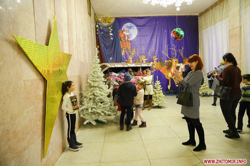 У приміщенні музично-драматичного театру ім. І. Кочерги 26 грудня зібрались близько 1000 діток пільгових категорій з різних районів Житомирської області. Діти у супроводі дорослих приїхали на свято Нового року, яке проходило «під патронатом голови ОДА» Віталія Бунечка.