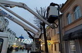 У Житомирі на пішохідній Михайлівській 26 грудня комунальники встановили гобо проєктор зображень.