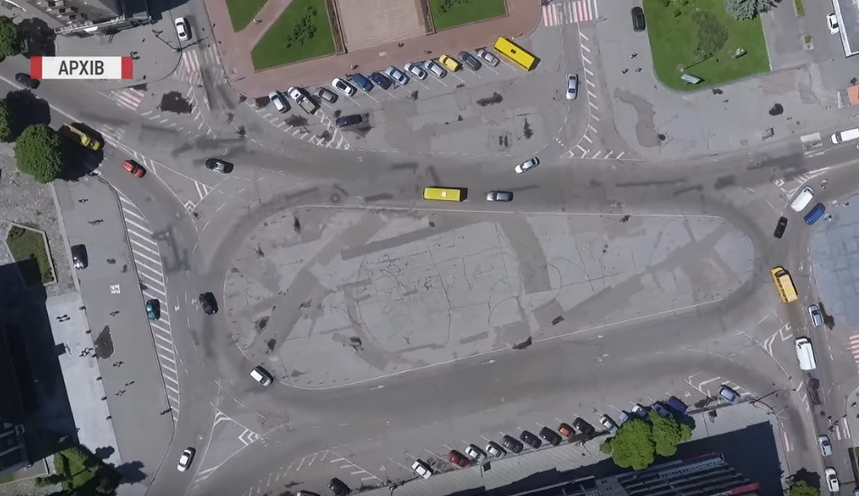 Раніше в центрі майдану Соборного було зображене коло, за яким здійснювався рух транспорту.