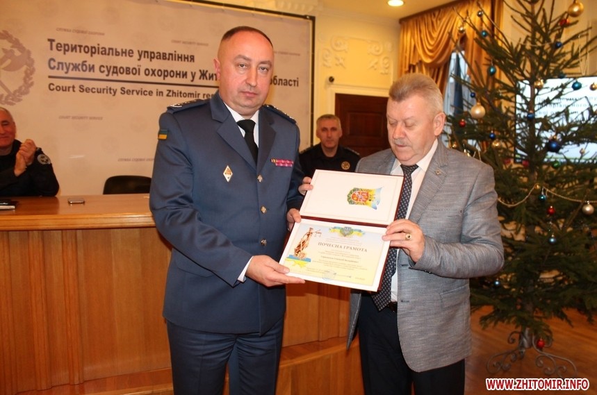 За підсумками двомісячної діяльності (Служба судової охорони у Житомирській області працює з жовтня 2019 року) начальник управління Геннадій Герасимчук вручив співробітникам подяки за внесок у розбудову та становлення Служби, а також отримав Почесну грамоту від начальника територіального управління Державної судової адміністрації України в Житомирській області Василя Морея – «За виконання службових обов’язків, значні досягнення у професійній діяльності та особистий внесок у розвиток і розбудову Служби судової охорони».